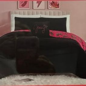 The Juicy Couture Gothic Border reversible comforter set offers the color pop your room needs. An exquisitely embroidered Juicy motif creates an elegant border that perfectly frames the comforter.