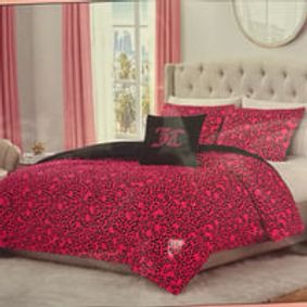 Includes (1) 90"x108" comforter, (2) 20"x36" flange pillow shams, (1) 18"x18" decorative pillow, (1) 12"x18" decorative pillow · Juicy Couture Signature Style: Featuring distinctive Juicy design elements, this set brings a touch of runway-inspired ...