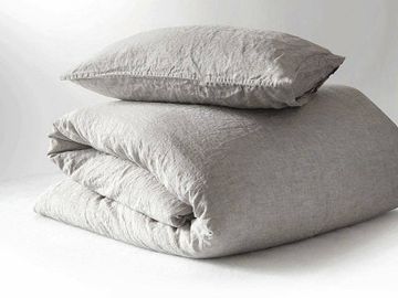 Linen lace DUVET SET in bluish green melange, natural flax. Duvet cover, pillowcases. Queen Cal King Colossal farmhouse soft linen bedding