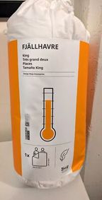 FJÄLLARNIKA Duvet, extra warm King. An extra warm duvet in soft cotton, with down/feather filling. The stitched inner walls retain the heat, giving you a warmer sleep environment. A good choice if you need extra warmth while sleeping. 252 thread count.