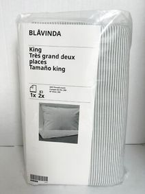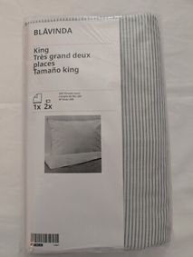 Available in more optionsSOLFIBBLAOption: SOLFIBBLA, Duvet cover and pillowcase(s), white green/stripe, KingOption: SOLFIBBLA, Duvet cover and pillowcase(s), white beige/stripe, KingOption: SOLFIBBLA, Duvet cover and pillowcase(s), white blue/stripe, King ... Available in more optionsEKTANDVINGEOption: EKTANDVINGE, Duvet cover and pillowcase(s), anthracite white/check, Full/Queen (Double/Queen) ... Available in more optionsHEDFRYLEOption: HEDFRYLE, Comforter set, green, Full/QueenOption: HEDFRYLE, Comforter set, blue, Full/QueenOption: HEDFRYLE, Comforter set, green, Twin/Twin X-longOption: HEDFRYLE, Comforter set, white/beige, Twin/Twin X-longOption: HEDFRYLE, Comforter set, blue, Twin/Twin X-long