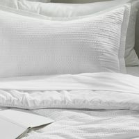 OFELIA VASS Comforter set - white King. The comforter’s seersucker structure gives your bed an inviting expression. 100% cotton fabric that breathes and feels wonderfully soft against your skin. Pillow sham with a closure in the middle of the back. 205 thread count. Machine washable at 104°F.