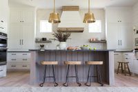 The island, as shown here, is not complete. There will be a 12-15" overhang with 3 stools facing the range wall. Overhang will be wide enough to allow island to center to sink window, as there will be 2 pendant lights on island and 1 over sink (all must line up). So finished island countertop size will be around 8' long x 3' wide.