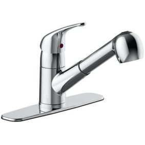 Standard faucet: This faucet features a sprayer located to the side. The sprayer has a long hose that retracts through a hole in the sink. Pull-out kitchen faucet: With a detachable head and a retractable hose, pull-out kitchen faucets let you spray hard-to-reach corners or fill a pot sitting on the