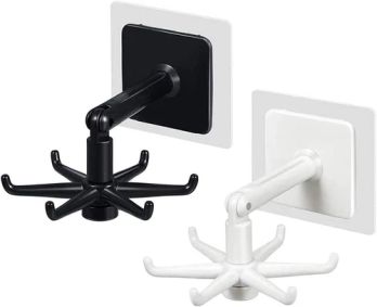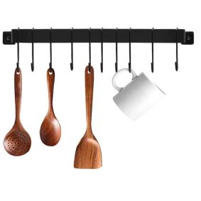 Amazon.com: YiZhi Adhesive Wall Hooks Rack Kitchen Rail, Space Saving Utensil Holder No Drilling Wall Mounted Accessory Hanger with 6 Hooks for Kitchen Bathroom Bedroom Pack of 2 (Black) : Home & Kitchen