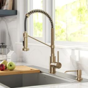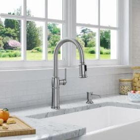 Kohler Guild Pull-down Kitchen Sink Faucet with Three-function Sprayhead · Rated 4.6 out of 5 stars based on 290 reviews. (290) Delta Lenta Touch Pull-down Kitchen Faucet with Soap Dispenser · Rated 3.9 out of 5 stars based on 36 reviews. (36) KRAUS 18" Pull-down Commercial Kitchen Faucet with Matching Soap Dispenser ·