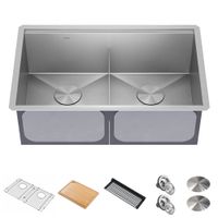 KRAUS Kore Workstation 30-inch Undermount 16 Gauge Stainless Steel Kitchen Sink, Double Bowl Kitchen Sink with Accessories, KWU112-30, Double Bowl - Amazon Canada