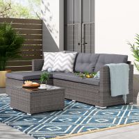 3pcs L-shaped Patio Furniture Wicker Outdoor Sectional Set For Small S