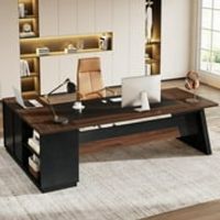 From $199.99Bestier Farmhouse 63" L Shaped Desk with Hutch, Wood Computer Desk with Drawers, Charging Station, LED Light, Fluted Sliding Door Cabinet, Monitor Stand, Executive Desk for Home Office, Rustic Brown