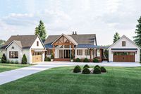 Greta Spacious Ranch Style House Plan 9589. Need a great house for multigenerational living? Consider House Plan 9589! This lovely ranch with Craftsman elements offers 2,745 square feet in total, but it's divided between the main house and the attached guest or in-law apartment. The main house offers open-concept living with an island kitchen, a vaulted primary suite, a secondary bedroom near a hall bath, an office, and a large mudroom/laundry room. The apartment is placed in front, so it has easy exterior as well as interior access. It features a one-wall kitchen beside living space, one bedr