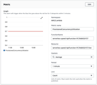 September 3, 2020 - The shorter your functions run, the less concurrency you need. You should use Auto scaling to optimize your PC costs. There’s a feature in Auto scaling called TargetTracking. This flavor of auto scaling tries to maintain a utilization percentage you specify. When you enable this feature two CloudWatch alarms are deployed and both monitor the ProvisionedConcurrencyUtilization metric: A scale up alarm that requires 3 data points over 1 minute each