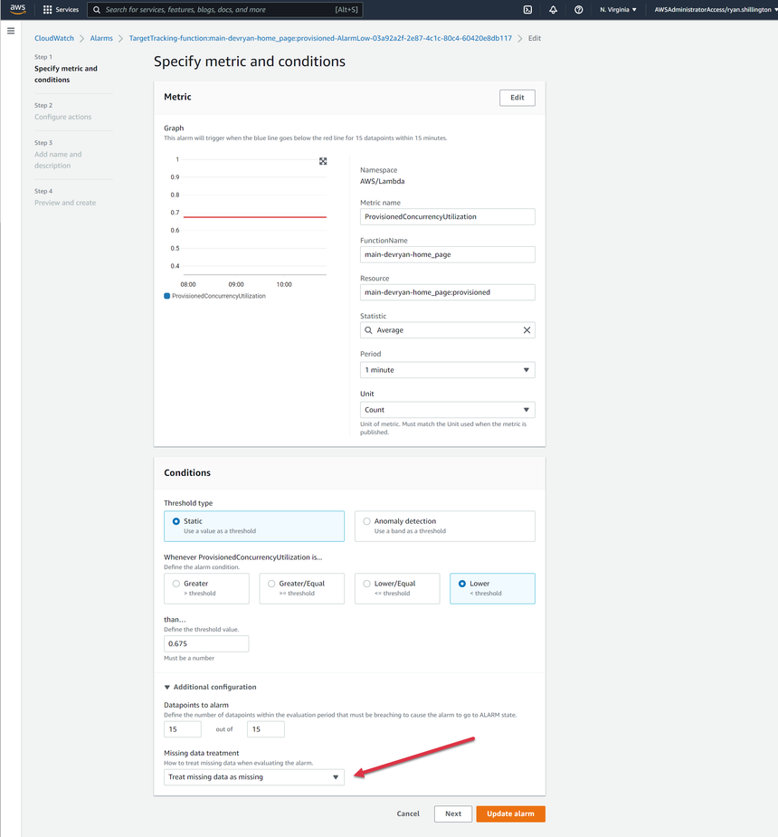 June 7, 2024 - If everything is set up correctly the scaling policy should trigger application autoscaling to scale up the number of provisioned concurrent lambda functions.