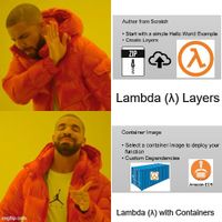 Strive to have static layers higher up in your Docker file list, and place layers that change more often lower down. This improves caching, which improves performance. The image owner is responsible for updating and patching the image. Add that update cadence to your operational processes. For more information, see the AWS Lambda documentation. ... FROM public.ecr.aws/lambda/python:3.xx # Copy function code COPY app.py ${LAMBDA_TASK_ROOT} COPY requirements.txt ${LAMBDA_TASK_ROOT} # install dependencies RUN pip3 install --user -r requirements.txt # Set the CMD to your handler (could also be done as a parameter override outside of the Dockerfile) CMD [ "app.lambda_handler" ]