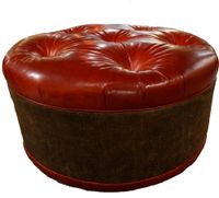 Tufted leather ottoman in rich oxblood red.