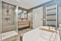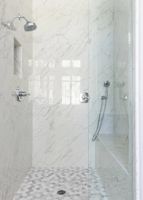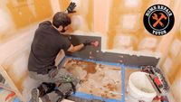 Of course I forgot to take before pictures but this bathroom was completely rebuilt. I naively thought large format 24x48 tiles would be a good choice for my first tile job because "there are only a few tiles to set".