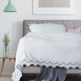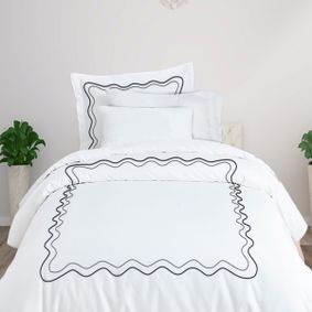 Fanning out along the Mediterranean coast, Frances scenic southeastern region is famous for its fields of lavender. Inspired by its beauty, Provence Lavender is a sea of cool, silvery greys flecked with dashes of lavender. This luxurious bed linen is woven from 100% extra-long staple cotton and looks equally at home in Provences rustic hillsides or the bustling metropolis of Paris. · Jacquard. 100% extra-long staple cotton. 350 thread count. · Duvet Cover: Backed in Capri Storm Grey or pattern overall. Subtle vertical stripes. Knife edge. Seam Zipper. · Shams: Knife edge with 1/8" self pipin