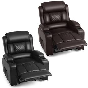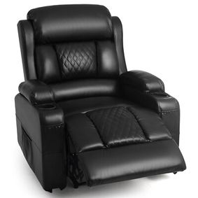 The accent lights are way too bright and ruin the entire light controlled room. The leather makes a lot of noise when it rubs on other leather. The leather is supple but it starts coming apart at the seams quickly if you have children. The spinning accessory tables are tiny and cumbersome. The ajustable headrest barely makes a difference.