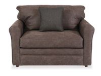 Enhance the versatility of your living room with the Leah Twin Sleep Sofa. This sofa flaunts classic roll arm design and loose back cushions that contribute to its casual and inviting style, creating a cozy ambiance for relaxation. Its rich brown-tone fabric upholstery offers a warm and welcoming feel while effortlessly complementing various décor themes. A coordinating pillow is also included to elevate the overall comfort and style.