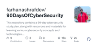 GitHub - farhanashrafdev/90DaysOfCyberSecurity: This repository contains a 90-day cybersecurity study plan, along with resources and materials for learning various cybersecurity concepts and technologies. The plan is organized into daily tasks, covering topics such as Network+, Security+, Linux, Python, Traffic Analysis, Git, ELK, AWS, Azure, and Hacking. The repository also includes a `LEARN.md · GitHub