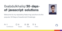 GitHub - 0xabdulkhaliq/30-days-of-javascript-solutions: Welcome to my repository featuring solutions to the popular 30 Days of JavaScript Challenge