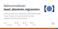 I have been making a program to analyse sets of data. I have implemented linear regression via least squares, but I was hoping to implement Least Absolute Deviation. For clarity, LAD wishes to minimise the sum of | y_i - a - b x_i |. To set up the problem as a set of linear constraints, a new variable, e_i, is used. Setting e_i = | y_i - a - b x_i |, we can form the inequalities e_i >= y_i - a - b x_i and -e_i <= y_i - a - b x_i . I have implemented simplex method in my program, so I wished to get it into a form usable by the simplex method. As such, I have converted each to [variables] <= value form, being -y_i = -a - b x_i - e_i + s_{2i} and y_i = a + b x_i - e_i + s_{2i +1}. The objective function is z = sum_{i=1}^{n} e_i. Since we wish to minimise this, I have negated everything to give -z + sum_{i=1}^{n} e_i = 0. Is this the correct setup for use of simplex? That is to ask: if I were to form a tableau from the following and apply simplex, would I get the desired a, b such that y = b x + a is the LAD line?
