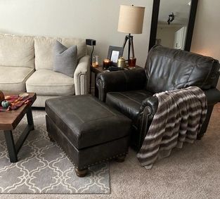 A soft throw draped over the chair is another excellent accent, as it contrasts against the texture of the leather and imparts even more comfort.