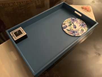 Check out our leather ottoman! This versatile piece can be used as an ottoman, coffee table, or extra seating, and it features a convenient tray top that is perfect for holding drinks or snacks.