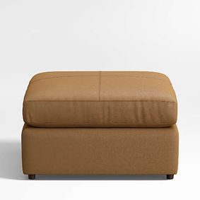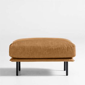Luxe leather and a rich caramel hue: A square ottoman that’s as versatile as it is handsome.