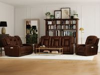 The Symphony Sofa, Loveseat, and Recliner Set is a luxurious ensemble designed to transform your living space with its elegance, comfort, and advanced features. Crafted from rich brown top-grain leather, each piece in this set showcases sophisticated diamond stitching on the seat backs and sides, adding a touch of refined elegance to your home decor.This set offers exceptional comfort with triple power functionality, including a zero gravity mechanism and extended footrest in all pieces. Each piece also includes USB Type A and C ports on all power switches, ensuring modern convenience for char