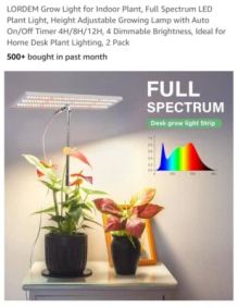 DOMMIA Grow Lights, 40W Linkable Grow Lights for Indoor Plants Full Spectrum, 6/12/16h Timer, Dimmable Ultra-Thin Plant Lights for Indoor Growing, Pinkish White, 1-Set · LED Grow Light Strips, 13 Inches Grow Lights for Indoor Plants Full Spectrum 3500K, 96 LEDs Plant Light with 3/9/12H Timer, 10 Dimmable Levels for Seedling Succulent, 2 Head