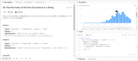 December 9, 2023 - Examples: 1. Input: haystack = "sadbutsad", needle = "sad" Output: 0 Explanation: "sad" occurs at index 0 and 6. The first occurrence is at index 0, so we return 0. 2. Input: haystack = "leetcode", needle = "leeto" Output: -1 Explanation: "leeto" did not occur in "leetcode", so we return -1. Constraints: 1. 1 <= haystack.length, needle.length <= 10^4 2. haystack and needle consist of only lowercase English characters. Time Complexity: O( n * m ) - Where n is the length of haystack and m is the length of needle - Runtime: 0 ms (Beats 100% of Java submissions in LeetCode) - Note: The mentioned time complexity is for worst case scenario.
