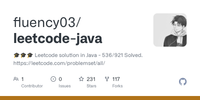 GitHub - fluency03/leetcode-java: 🎓🎓🎓 Leetcode solution in Java - 536/921 Solved. https://leetcode.com/problemset/all/