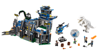 Stop a LEGO Jurassic World Indominus rex Breakout! Set includes impound with lab and feeding crane, helicopter and a gyro sphere. Direct the Indominus rex back to the impound! Red alert - the huge Indominus rex has broken out of the impound! Zach is inside the gyro sphere launched from the pen wall and now he's under attack.