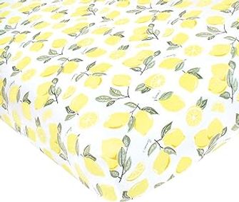 Made with soft and cozy fabrics in exclusive patterns and colors, Sweet Jojo Designs crib sheets add a stylish look to your nursery. Dimensions: 52 in. x 28 in. x 8 in. Brushed Microfiber - Yellow, Green, Beige and White Lemon Floral Print Fully elastic bottom for secure fit on most standard ...