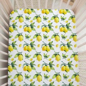 Upgrade your little one's crib with our super soft bamboo crib sheet! Our Citrus Signature crib sheet is inspired by the luscious lemons of Capri, Italy. Our sophisticated lemon print sits on a clean white background with black accents, perfect for a gender neutral nursery. Yellow lemons with our signature black and white accents, give the gift of a good night's sleep!