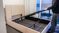 October 16, 2025 - After being pieced together, the team shared some quick pointers on how to use the hydraulic lift system—which includes compression springs at the base that allows me to lift up the mattress using the bed frame’s two included straps. Are there any standout features? As mentioned, the hydraulic lift system is very useful. There are two straps I need to grab hold of and lift to access the spacious storage area underneath my mattress.