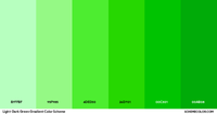 Dark Lime Green is a light bright shade of Green. It belongs to the color family Spring Green, and it has high lightness and high saturation.