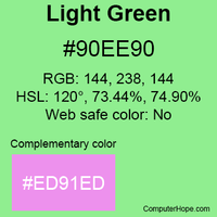 Hex Color and RGB Code for Light green, with Hex Code #90EE90 and RGB code 144, 238, 144