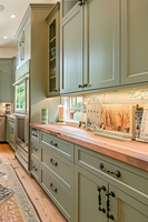Recently demoed the kitchen in our new house on the space coast of Florida and have been looking for light sage green cabinets like this sample photo. Does anyone have any cabinetmaker/ designer recommendations or know who carries cabinets like these?