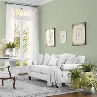 A neutral soft green, Light Sage creates a serene backdrop for any bedroom. It beautifully pairs with off-white trim and silver accents. PPG 1124-4