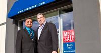 February 8, 2023 - Owner, Sheldon Leibner (right) and store manager, Darin Baring, stand in front of the new store during the grand opening of the Linen Chest at the Heartland Town Centre Saturday morning. Opening celebrations included reduced prices, sales and giveaways all day long. - Photo by Steven Der-Garabedian ... A Quebec-based chain of linen stores opened its second shop in Mississauga this morning.
