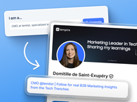 Highlight your company, impact, and who you serve. · A good example: “Founder @ Finlytics | Building AI tools for SMB finance teams | $12M raised.” It tells the reader who you are, what you do, and how big you play.