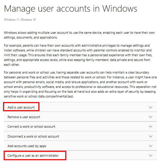 Manage user accounts in Windows - Microsoft Support