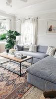Blue Gray Couch Living Room Ideas · Grey Rug Grey Couch Living Room · Blue Grey Couch Living Room Ideas · Living Room Blue Grey Couch · Grey Couch Blue Rug Living Room · Modern Boho Grey Couch · Boho Living Room Grey Sectional · Gray Sectional Boho Living Room ·