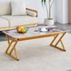 Amazon.com: AUZ 3 Pieces Gold Living Room Table Sets, White and Gold Rectangle Living Room Coffee Tables with Geometric Base, White Coffee Table Set of 3 : Home & Kitchen