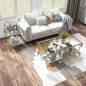 Elevate your living room with a gold coffee table set. Explore options in various sizes, from compact end tables to spacious center pieces.