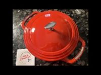 Looking to feed a crowd? Meet a classic and colorful enamel piece that makes every stove look good while delivering big on size. But even more importantly, it's a kitchen multitasker. Use it to broil, braise, bake, or roast in the oven up to 500 degrees F, and saute, simmer, or fry on any stovetop, as well as to marinate and refrigerate food.Smooth glass surface won't react to ingredientsUnparalleled heat retention and even heatingUse to marinate, refrigerate, cook, and serveGreat for induction cooktopsThis item includes a lidStainless steel knob and loop handles for great controlComes with 6
