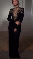Elegant Black Long Sleeves Evening Dress with Gold Beaded ...