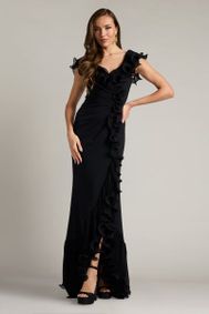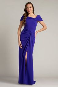 There are a variety of evening gown shapes and silhouettes to shop: elegant gowns with modified A-lines—a fit that skims the hips and falls into effortless volume. You’ll also discover long-sleeved silhouettes with floor-length hems, our signature twist-drape styles, and plenty of off-the-shoulder and V-plunge necklines.
