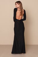 Glamorous in Glitter Black Long Sleeve Backless Maxi Dress ...